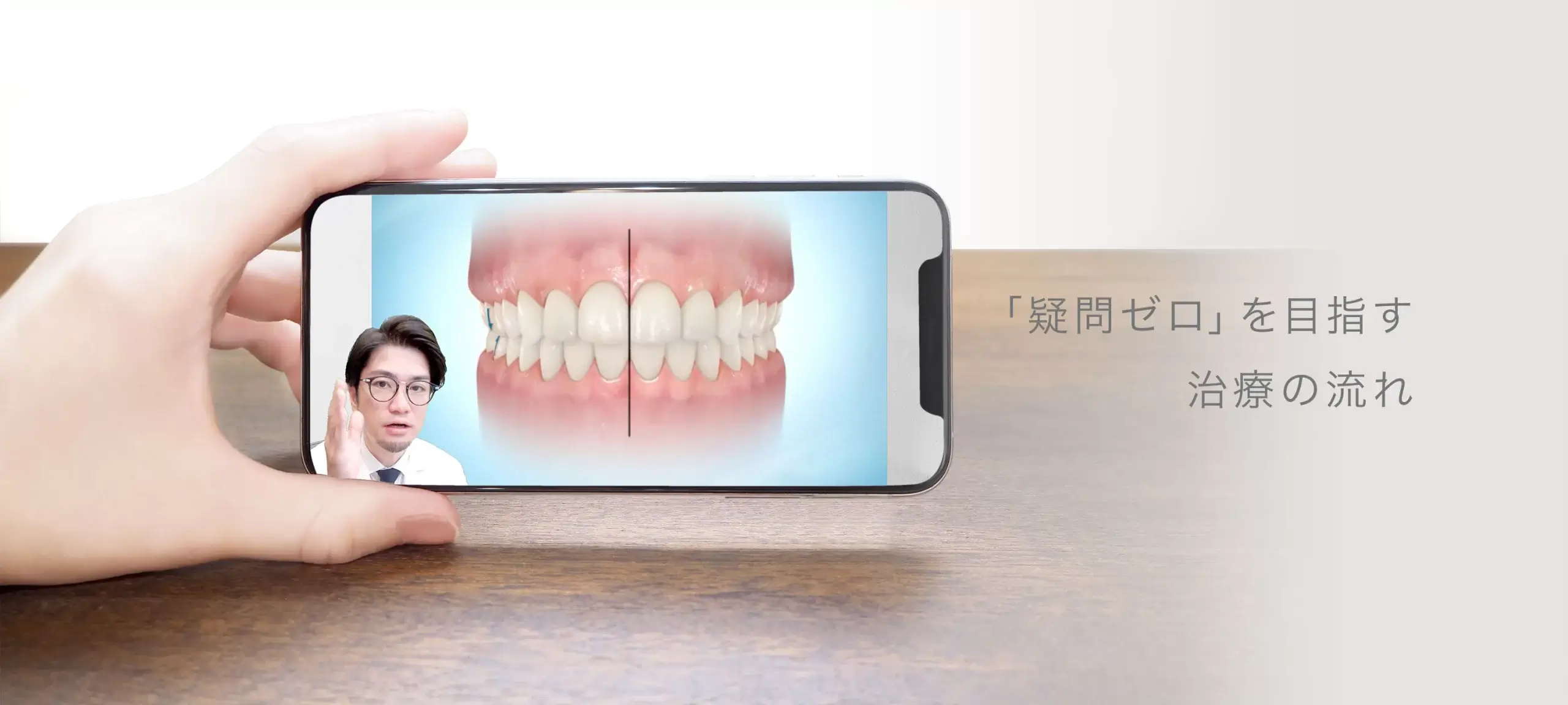 LINEやzoomのビデオ通話では、矯正を専門とする歯科医師が、事前にお送りいただいた歯ならびの写真や説明用の資料などを一緒に見ながら、現在の状態から考えられる治療法をくわしく解説いたします。